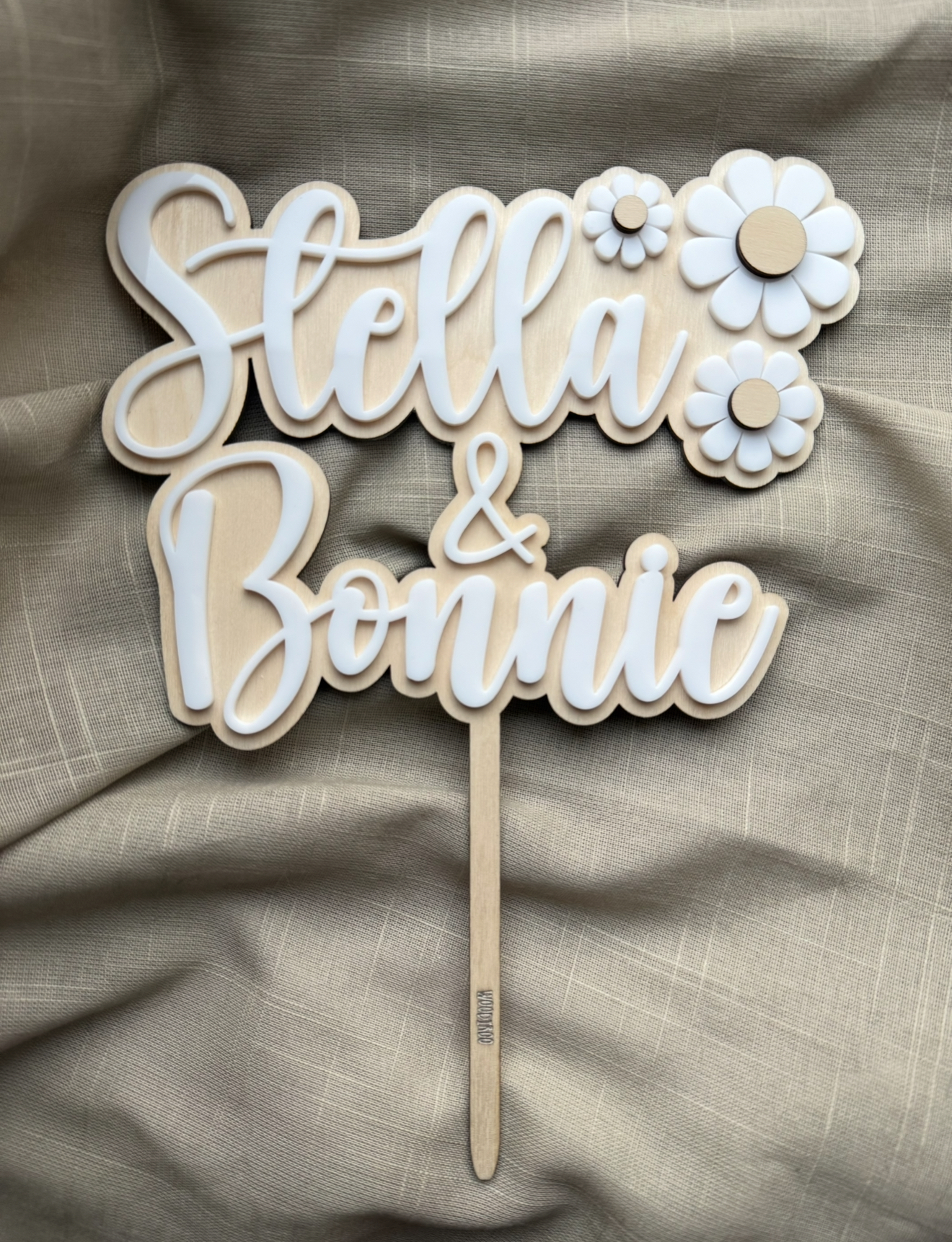 Söt caketopper med blommor i 3D-effekt.