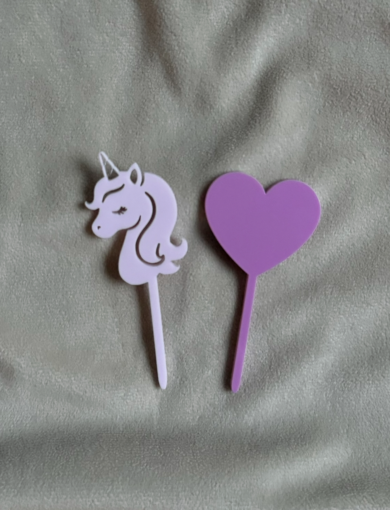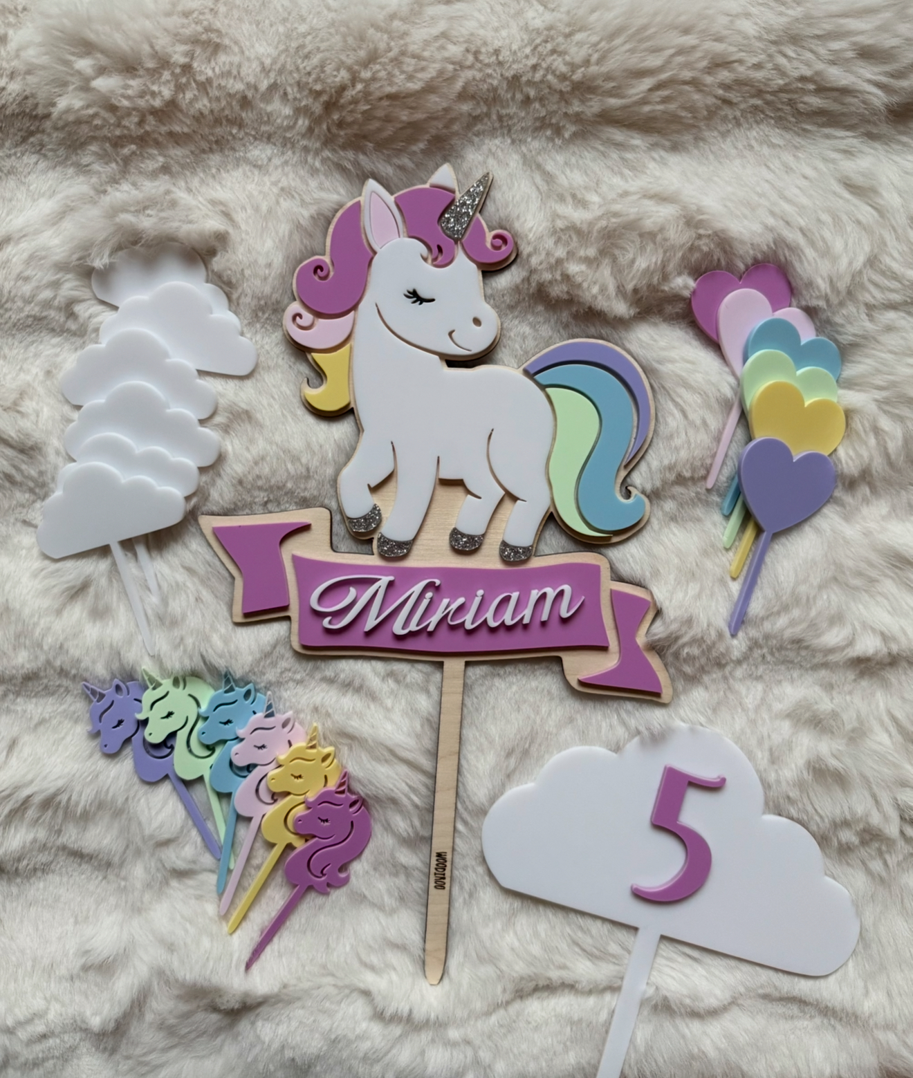 Små söta toppers till kalaset i form av enhörningar, hjärtan och moln🦄💗☁️