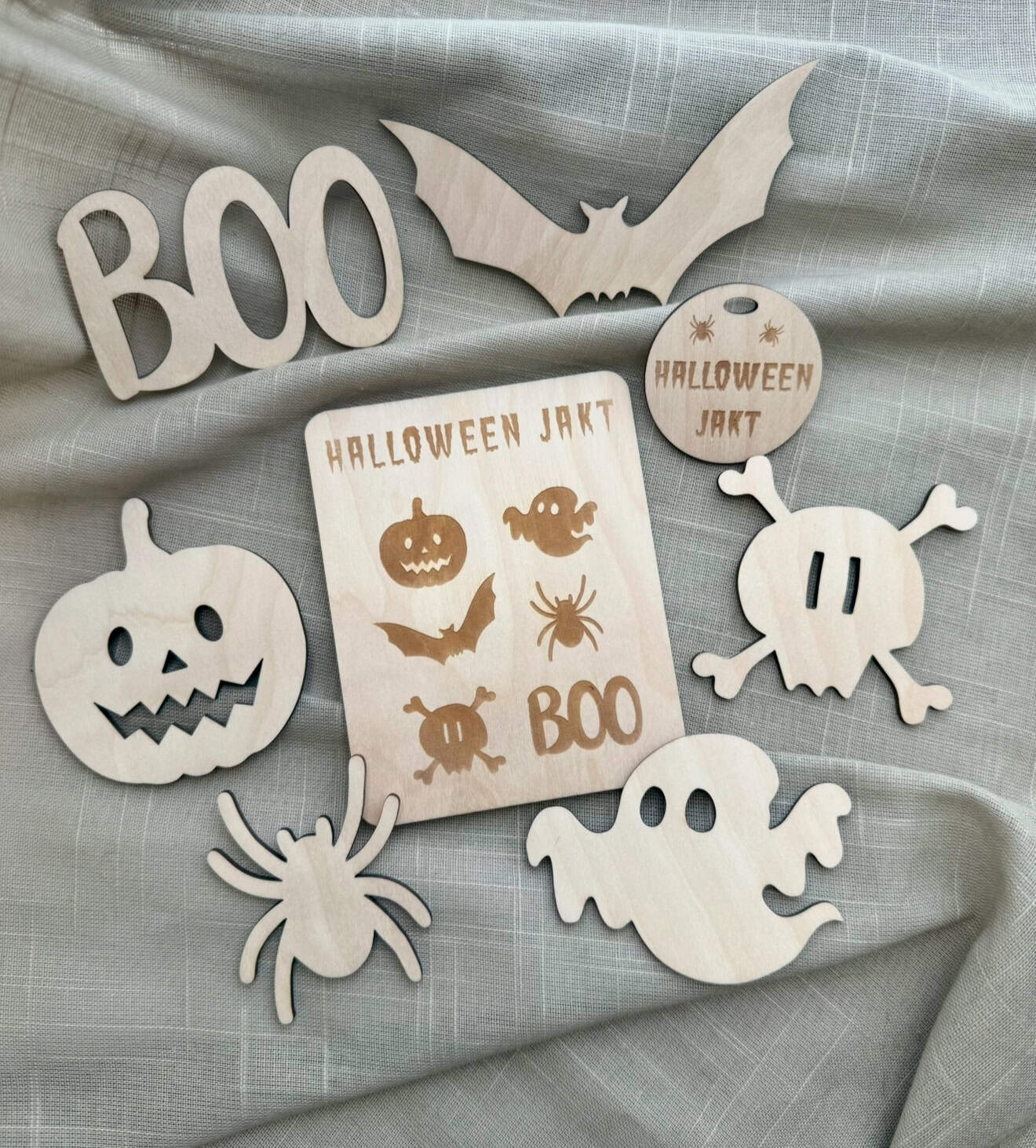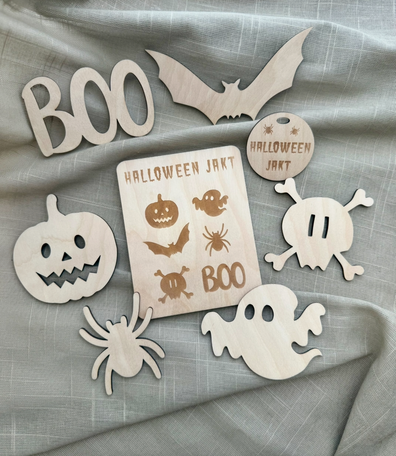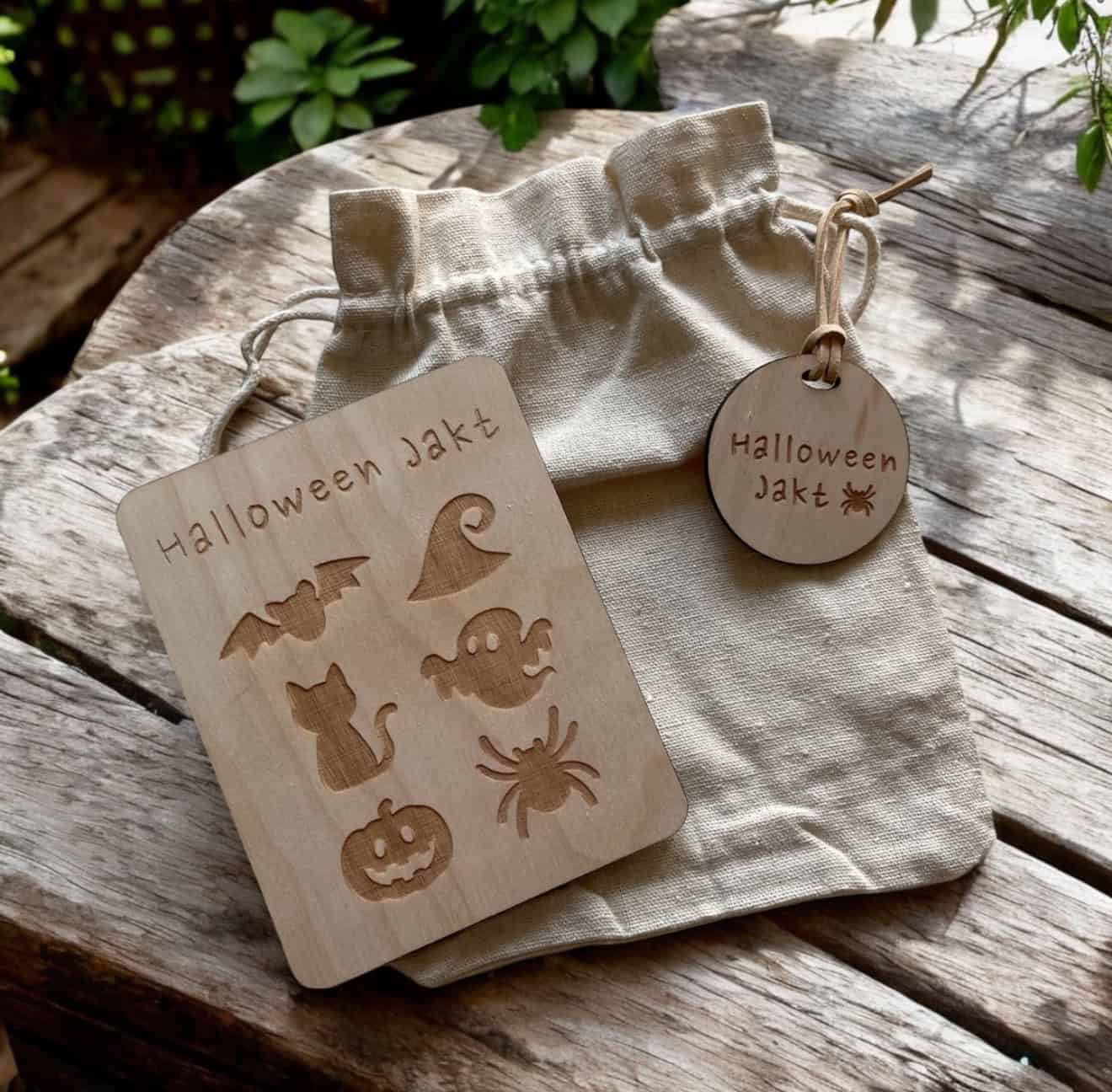 Innehåller: Tygpåse med namntagg, halloween-kort samt 6st figurer.