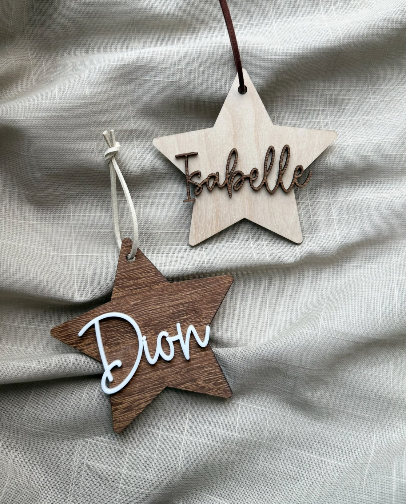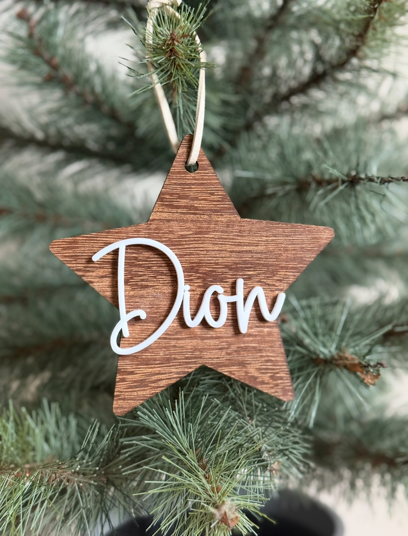 Dekorativt hänge i form av en stjärna med valfri text⭐️