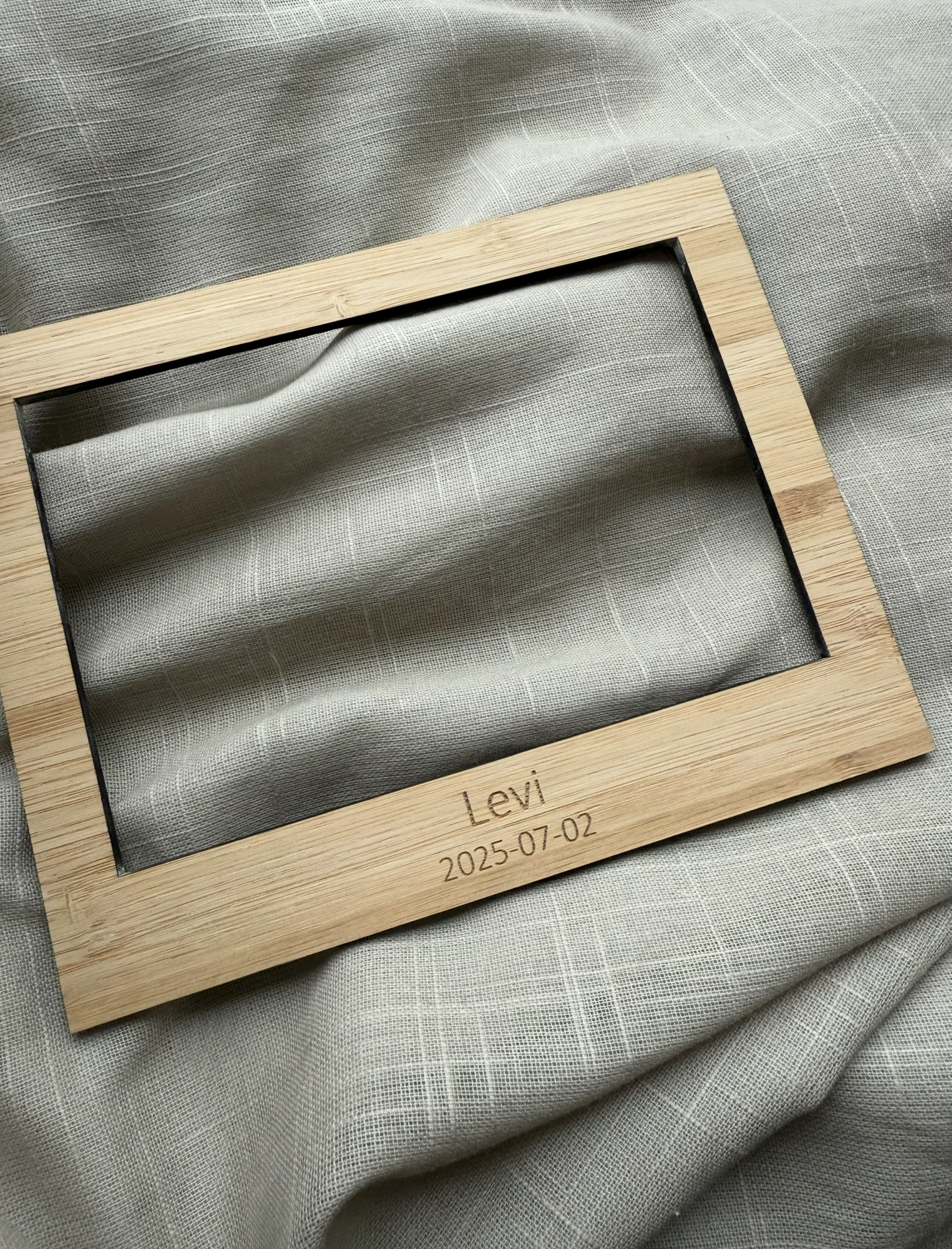 En fotoram i trä perfekt att spara dina minnen i och hänga upp på ex. kylskåpet.