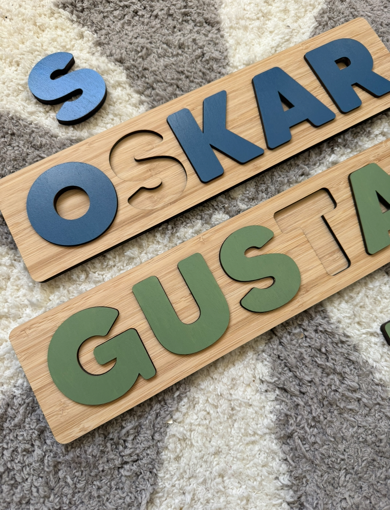 Ett kul och pedagogiskt sätt för barnen att lära sig känna igen sitt namn och sina bokstäver. Om barnet inte är tillräckligt gammal för att använda det än är det samtidigt en fin dekorativ detalj i barnens rum.