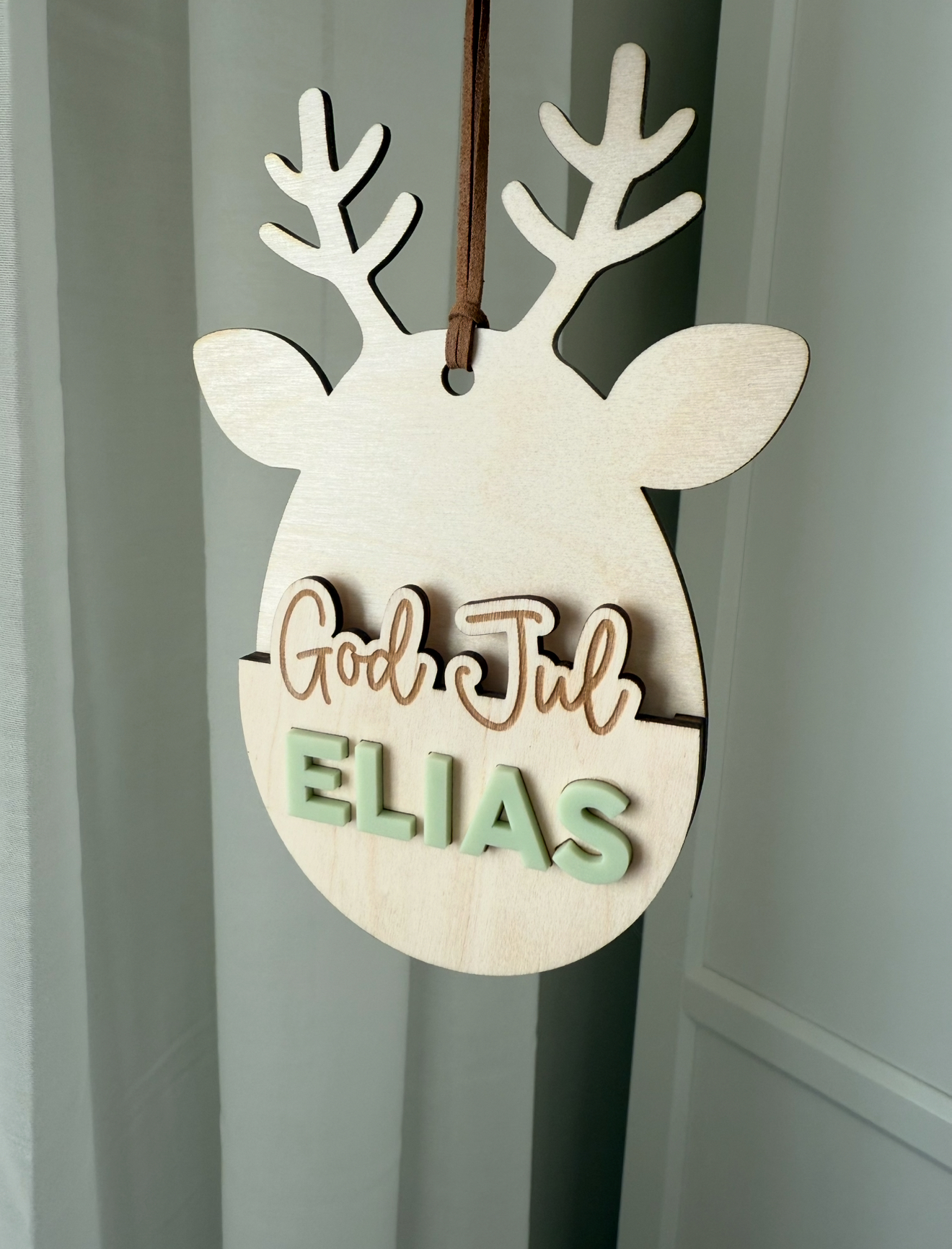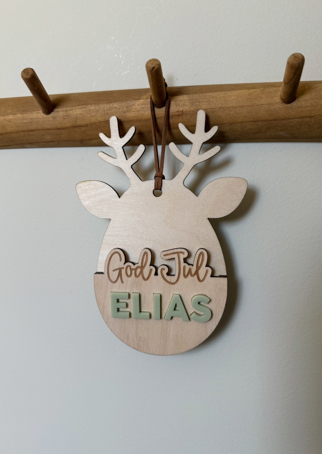 Skapas med graverad text på naturellt trä och namn i valfri färg i akryl eller trä