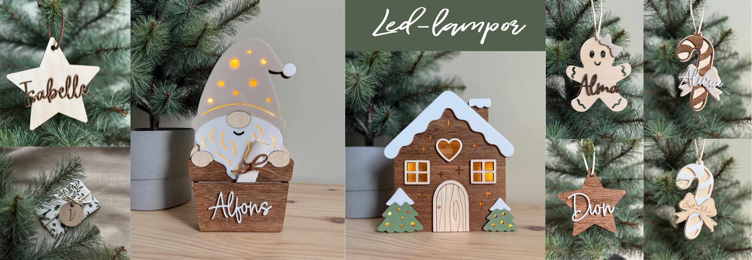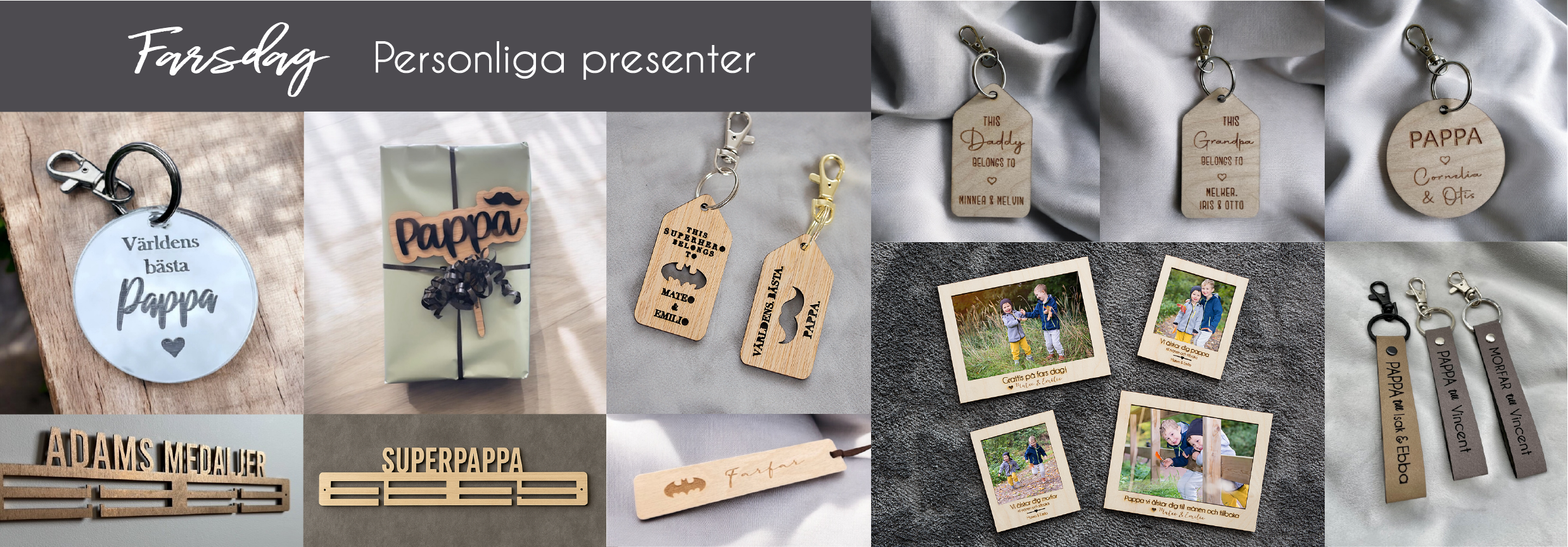 Skapas med gravyr på genomskinlig plexi eller naturellt trä