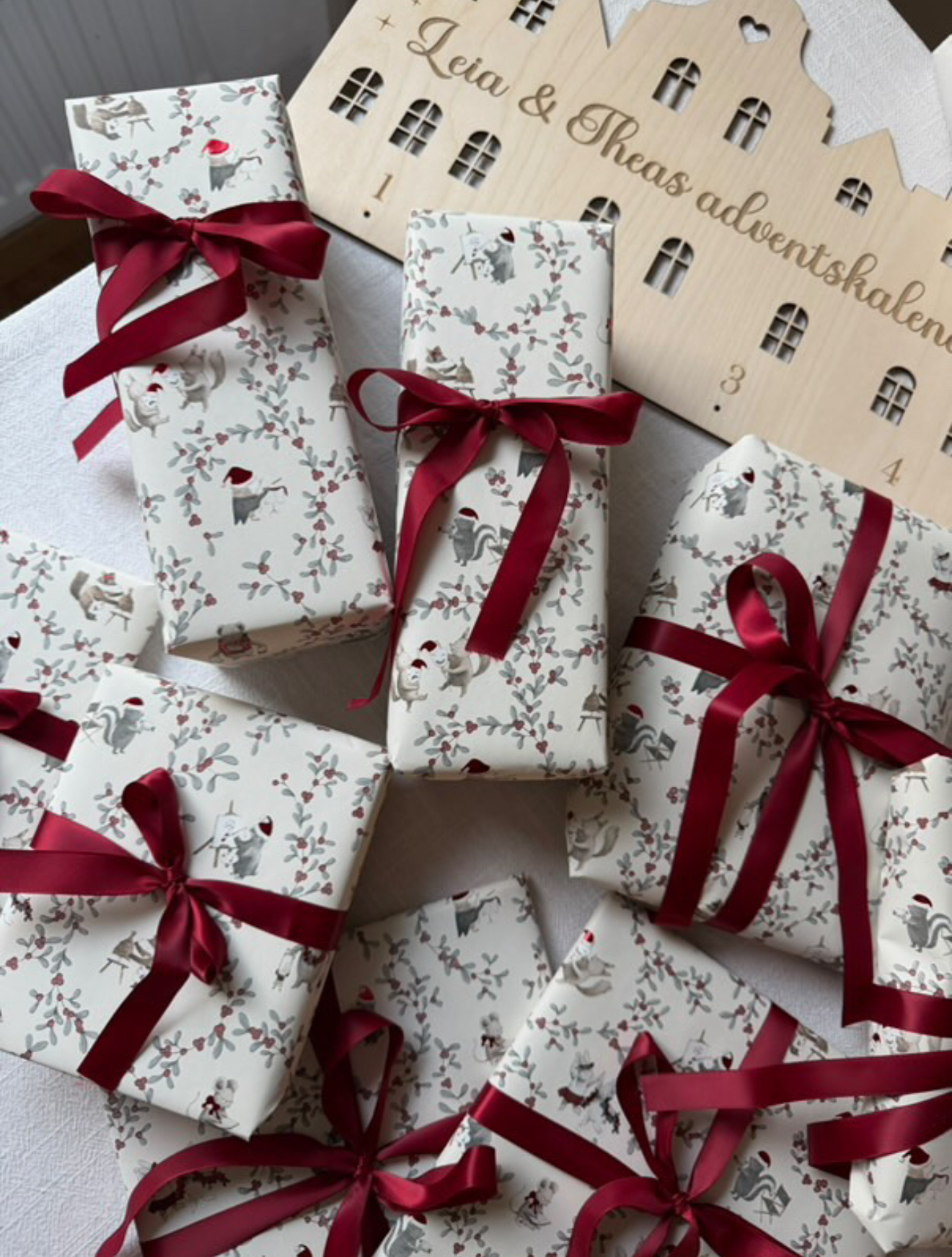 Magisk adventskalender med plats för 4 eller 24 små hängande paket för varje dag/adventsdag fram till julafton🎁