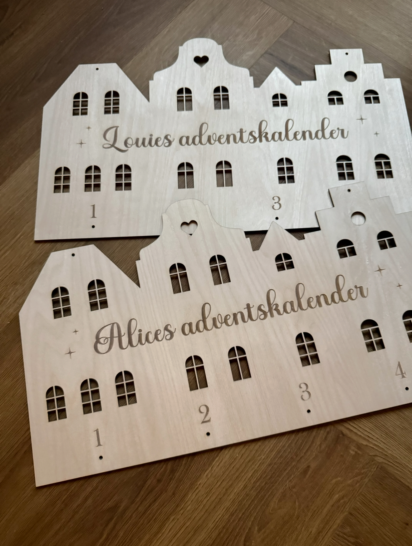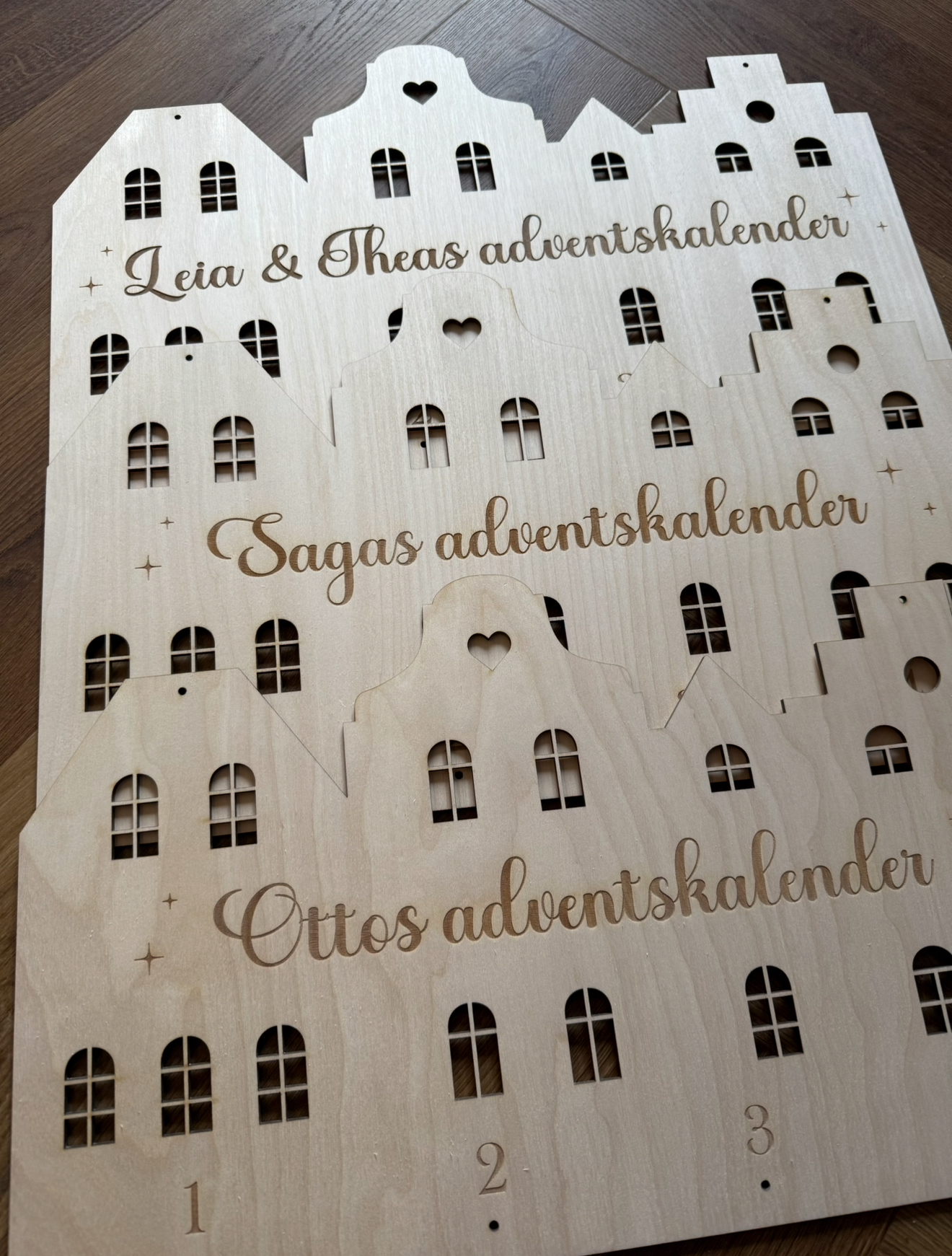 OBS. Valfri text – Fyll i exakt den texten ni vill ha graverat på adventskalendern (t.ex namn+adventskalender, bara namn eller annan valfri text). Texten som skrivs i textrutan är den som graveras in (dvs ”adventskalender” kommer inte automatiskt med om man bara skriver ett namn i textrutan).