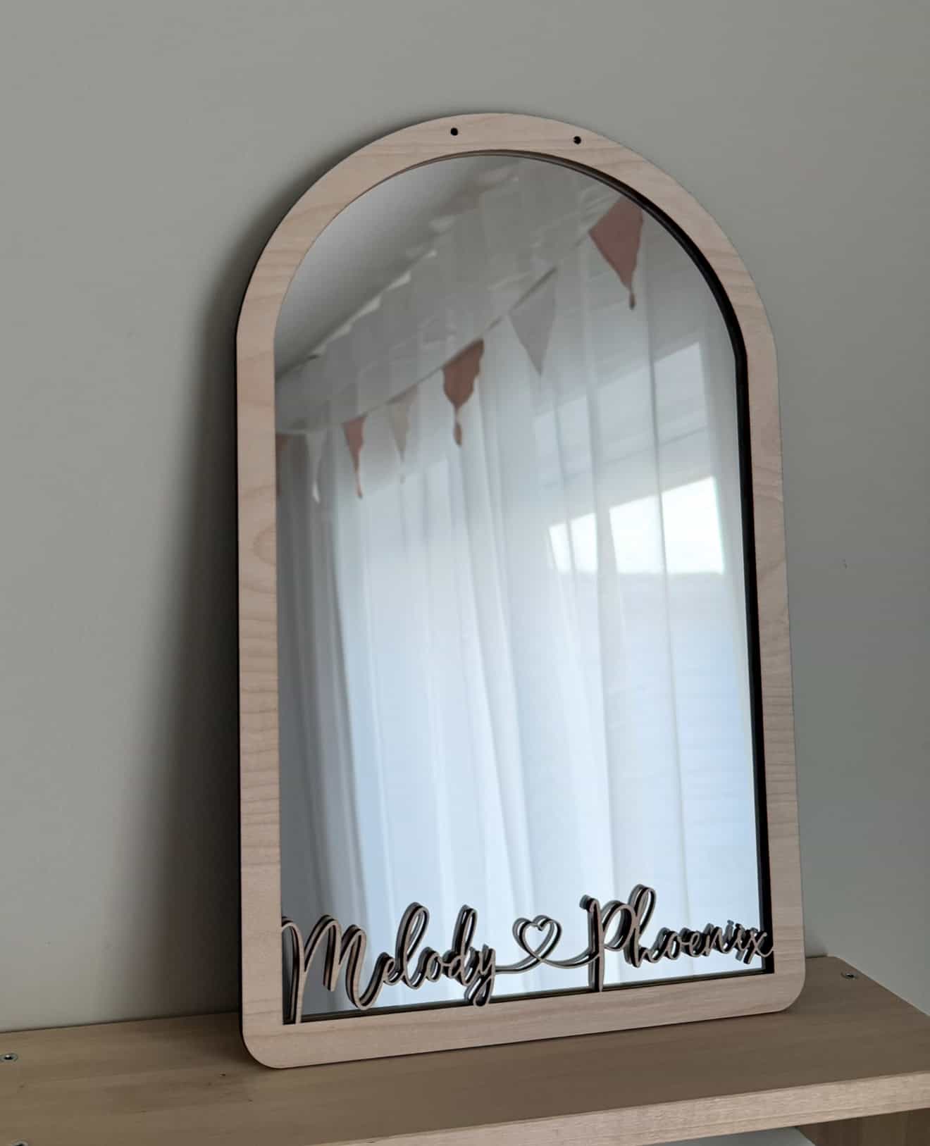 Spegel med valfritt namn – En fin detalj att pryda barnrummet med.