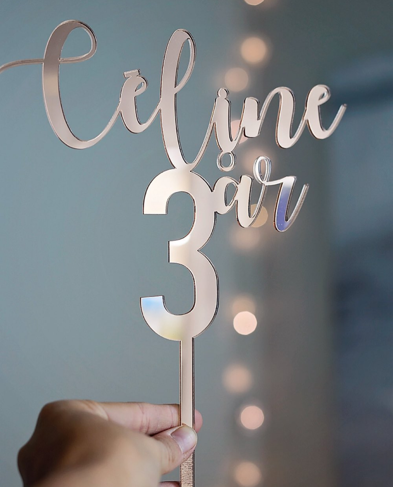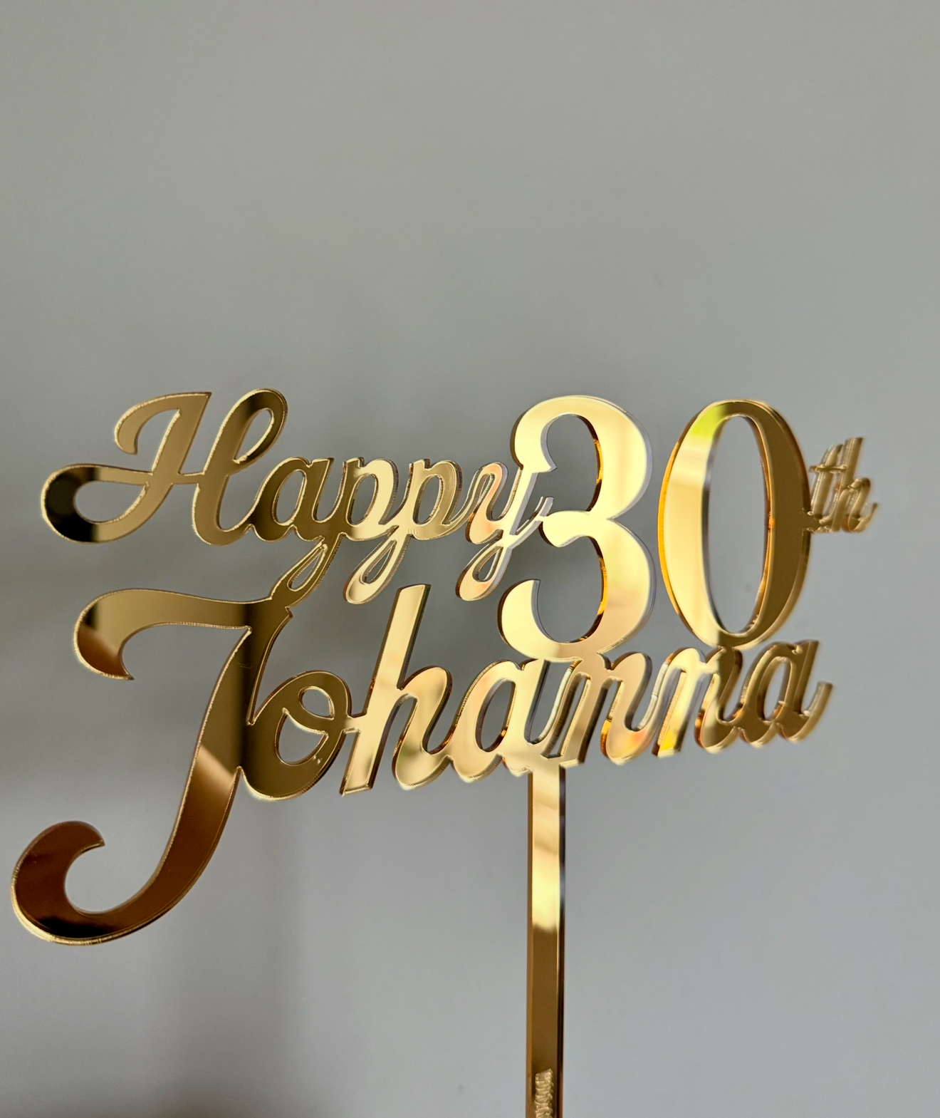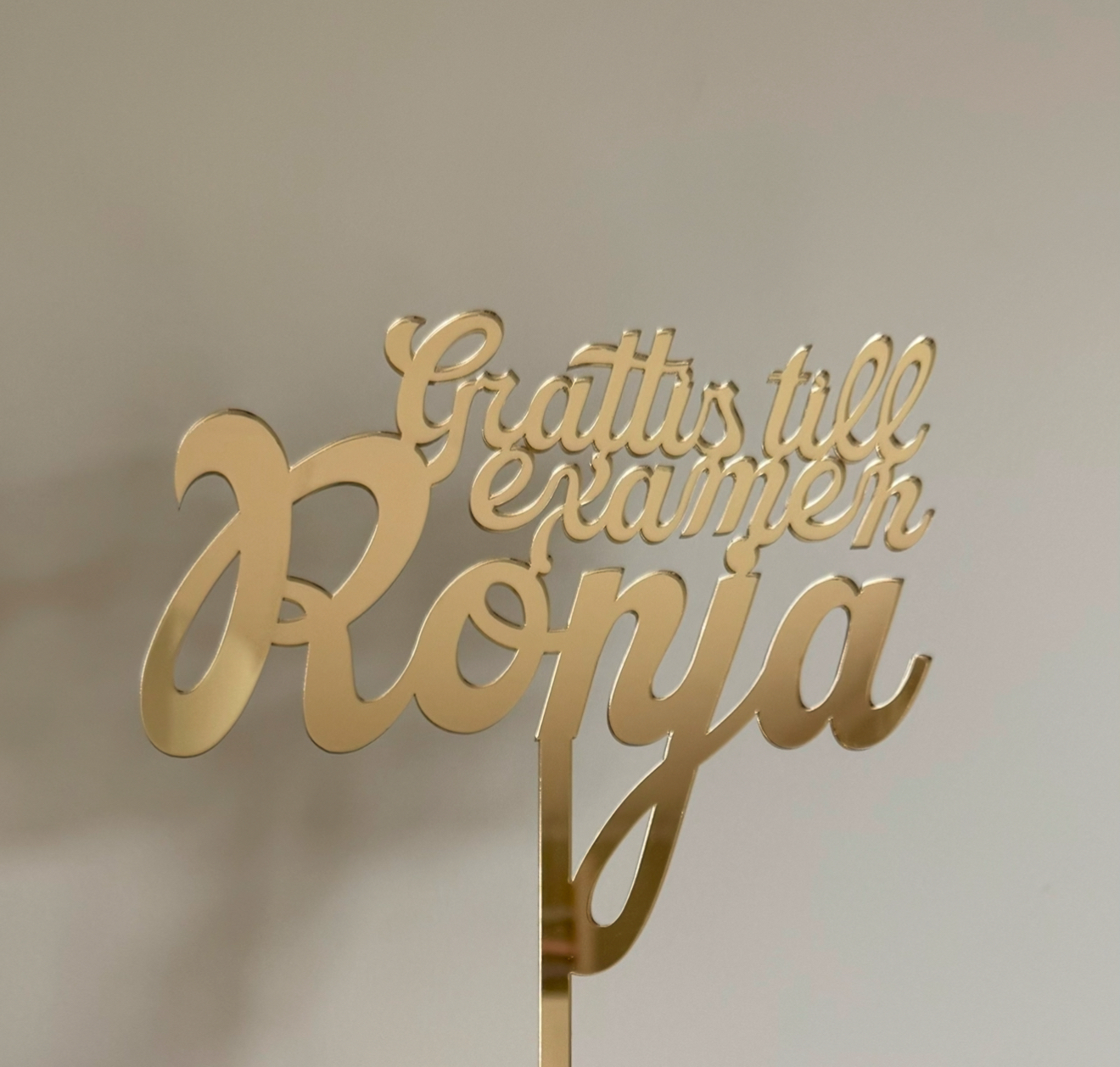 Kalasets höjdpunkt och blickfång är ju ofta tårtan. Passa på att dekorera den med en speglande personlig caketopper!