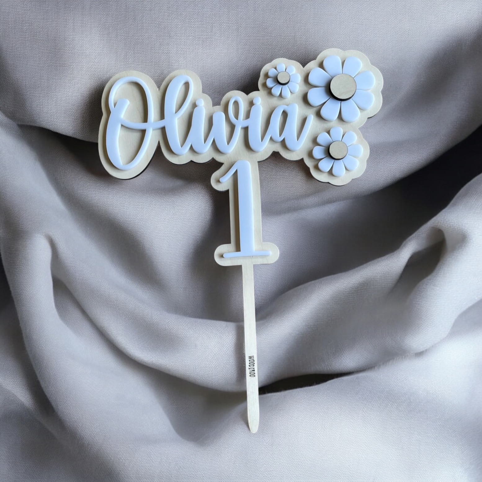 Söt caketopper med blommor i 3D-effekt.
