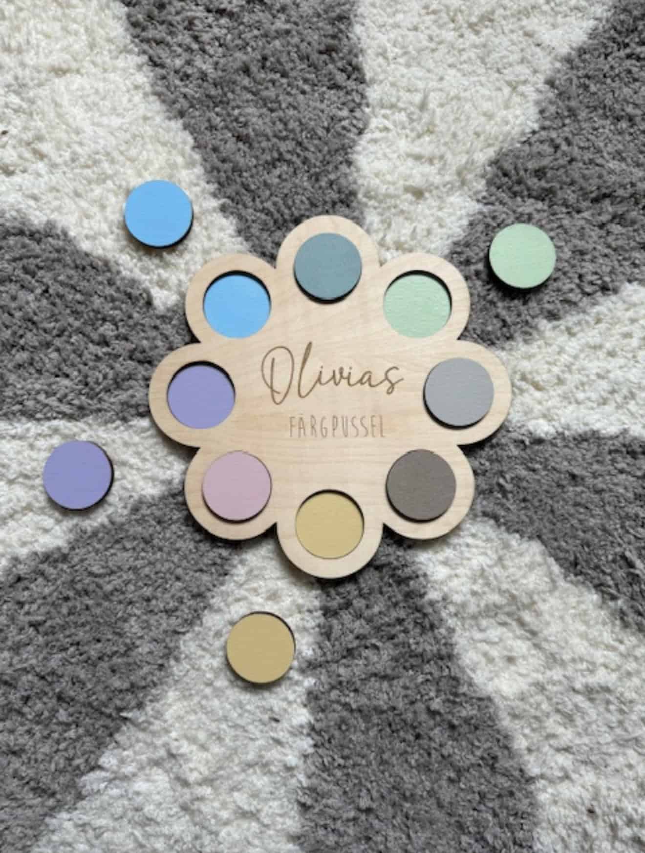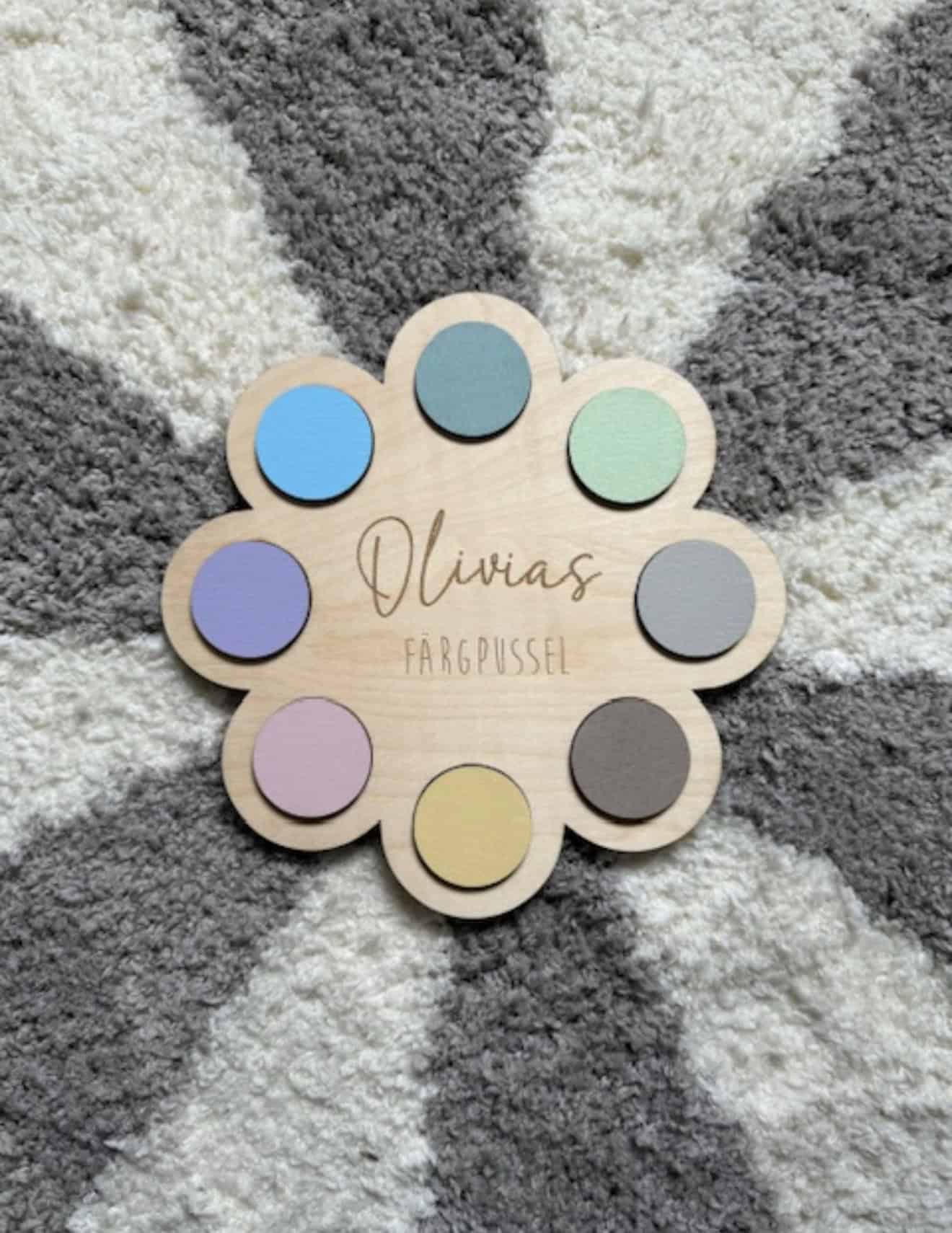 Valfritt namn/text graveras in och välj valfria färger på pusselbitarna (se färgkarta i slutet av bildspelet)
