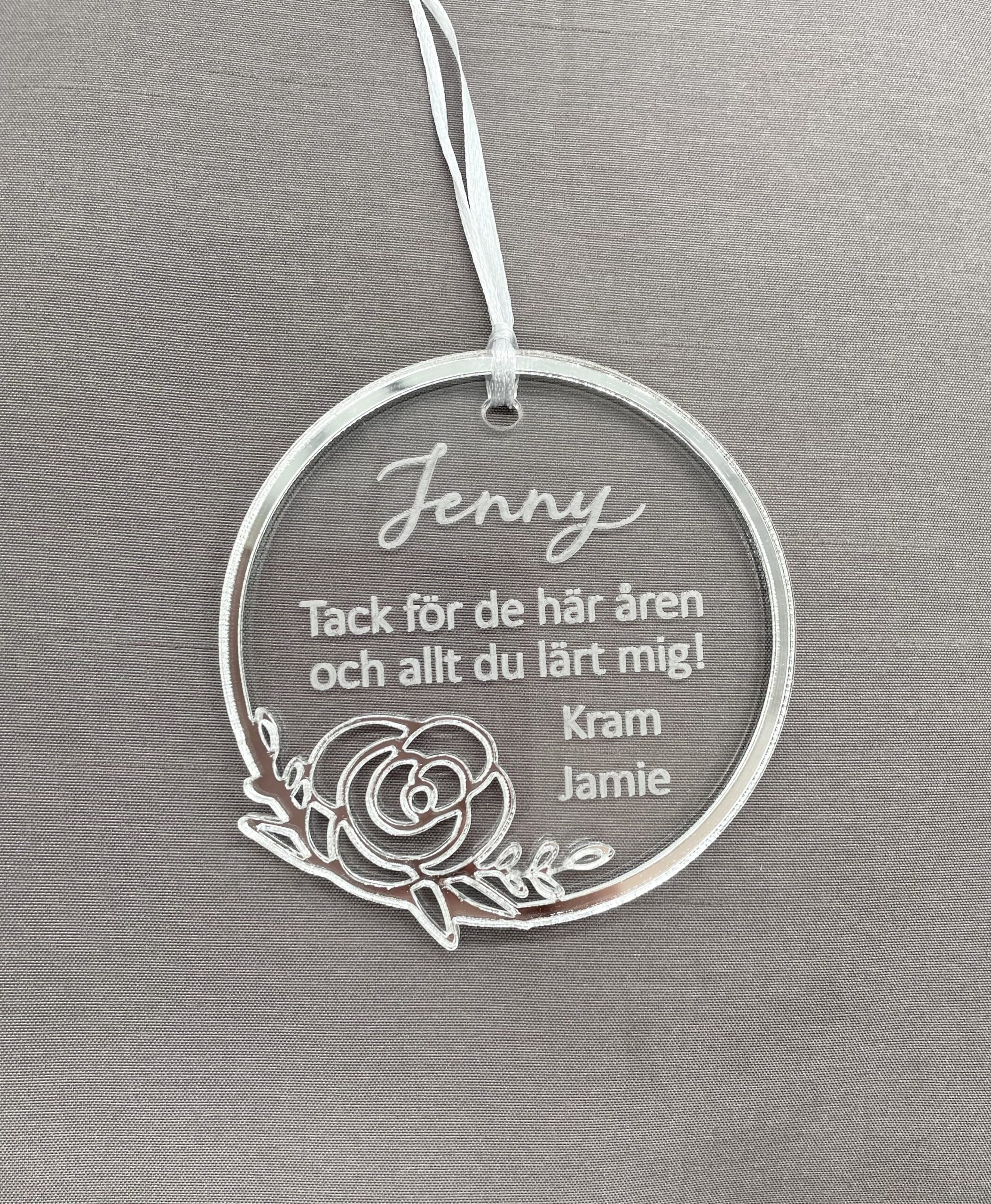 OBS. För lite längre texter passar typen med bara graverad text bäst (t.ex. ”tack för att du hjälpt mig växa…”, ”tack för de här åren..” osv)