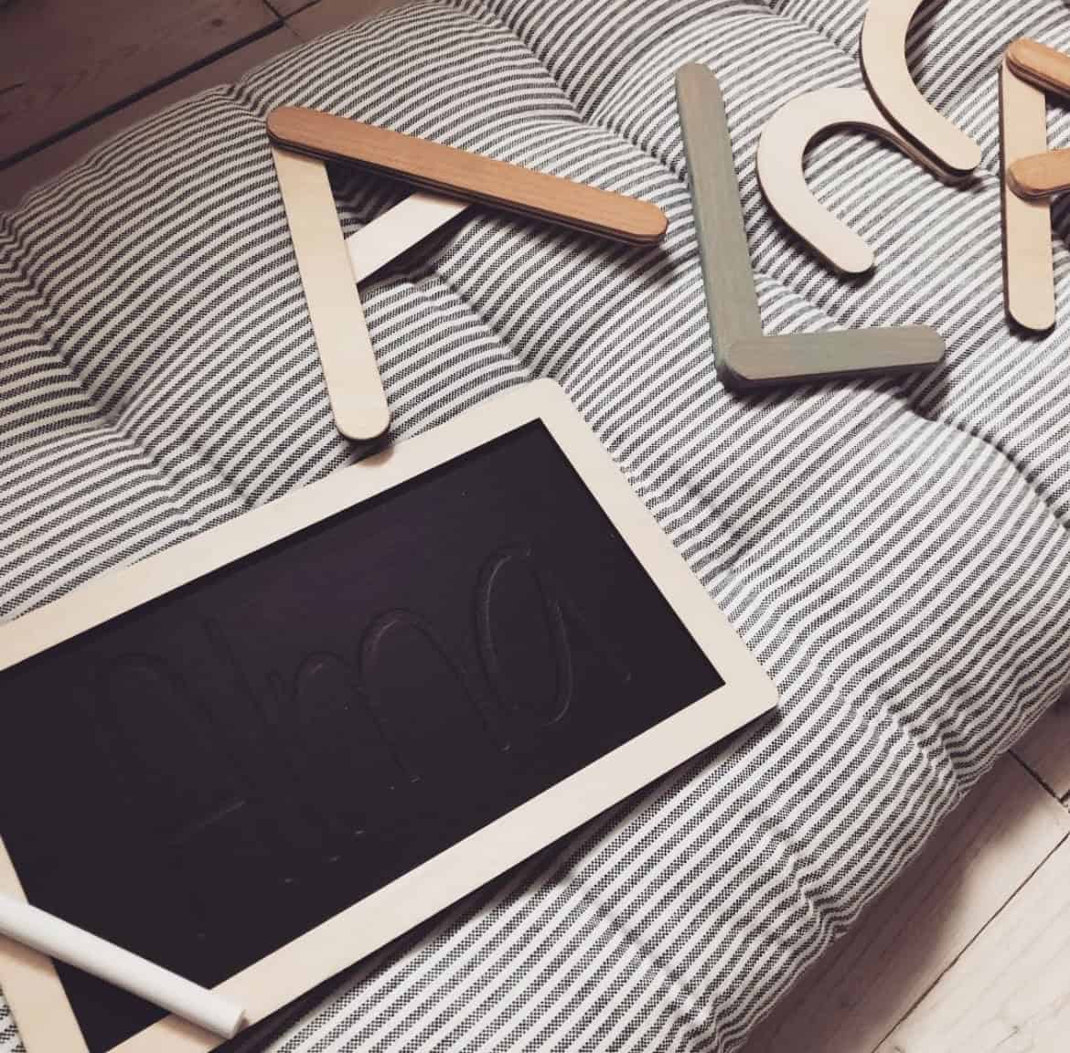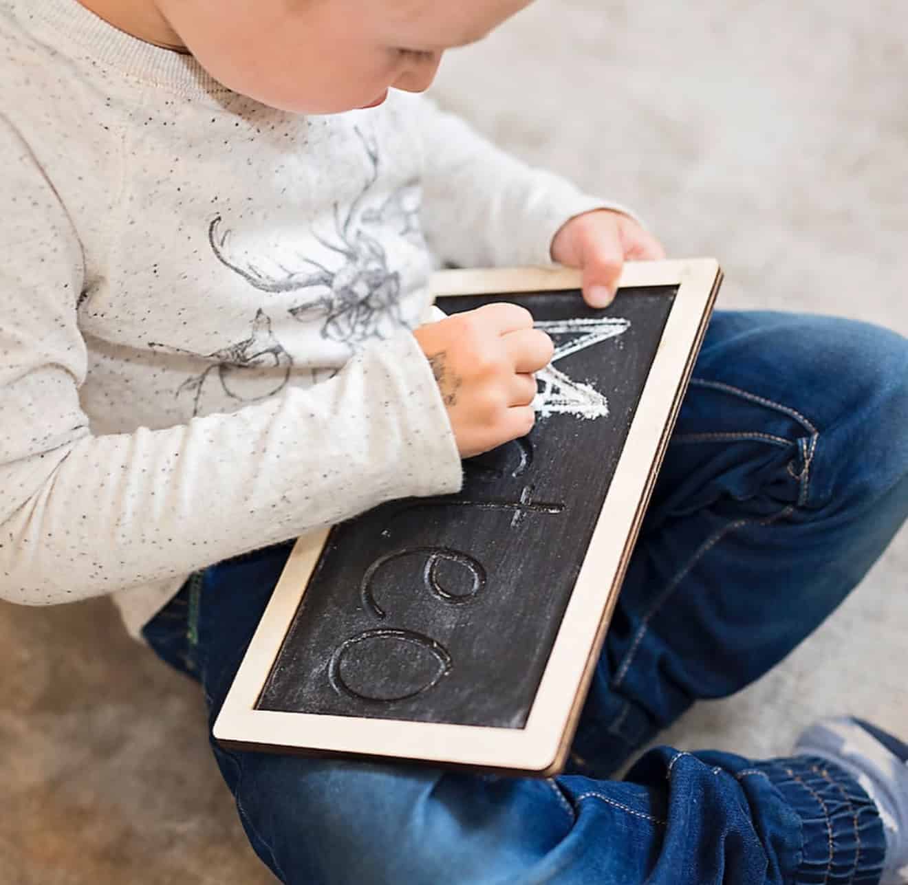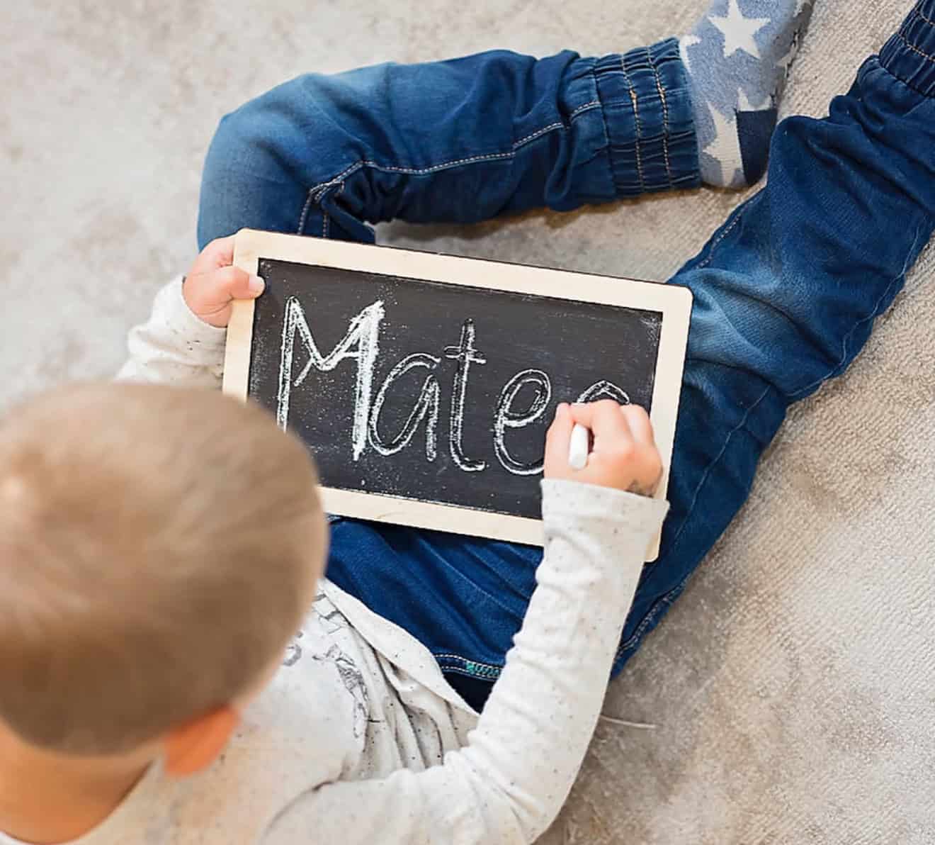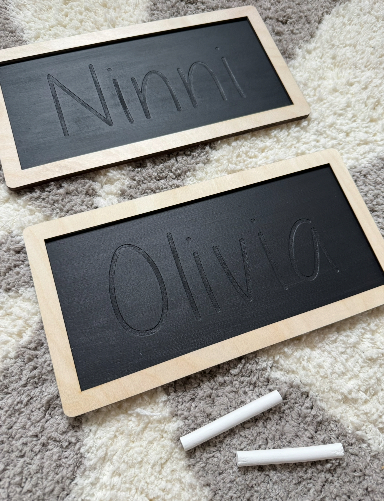 Låt ditt barn träna på att skriva sitt namn genom att följa spåren i griffeltavlan.
