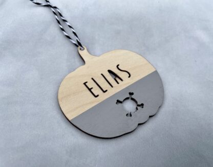 Personligt halloweenhänge med valfritt namn och färg på halvdopp.