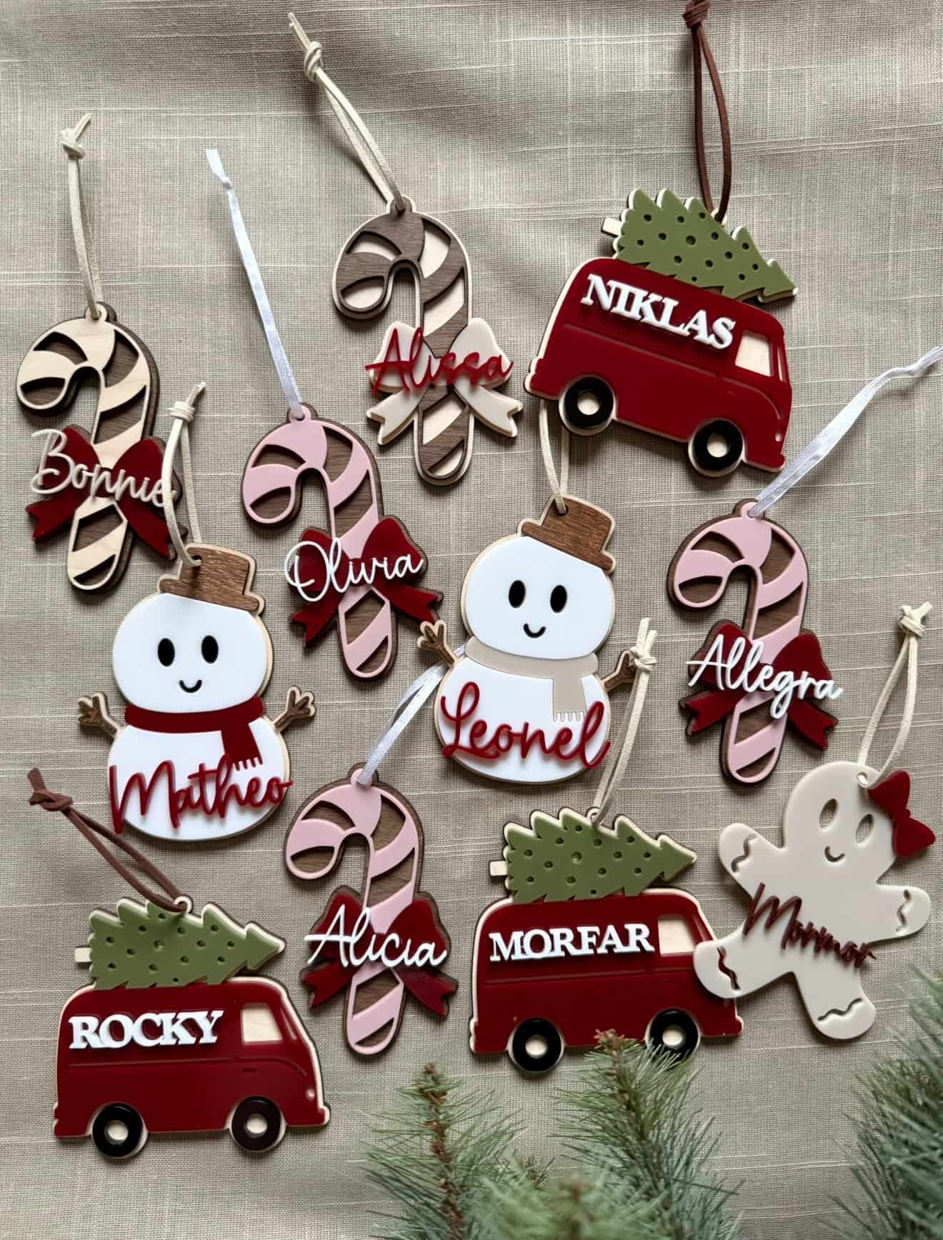 Graverat namn (gravyr direkt på träet), Namn i akryl/trä (3D-effekt), Inget namn/text