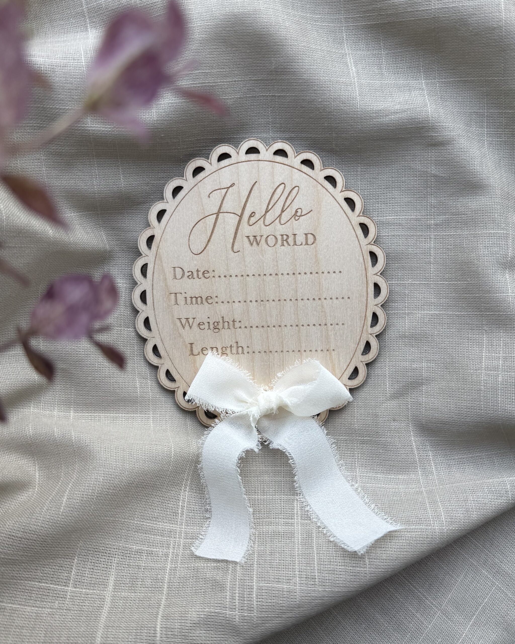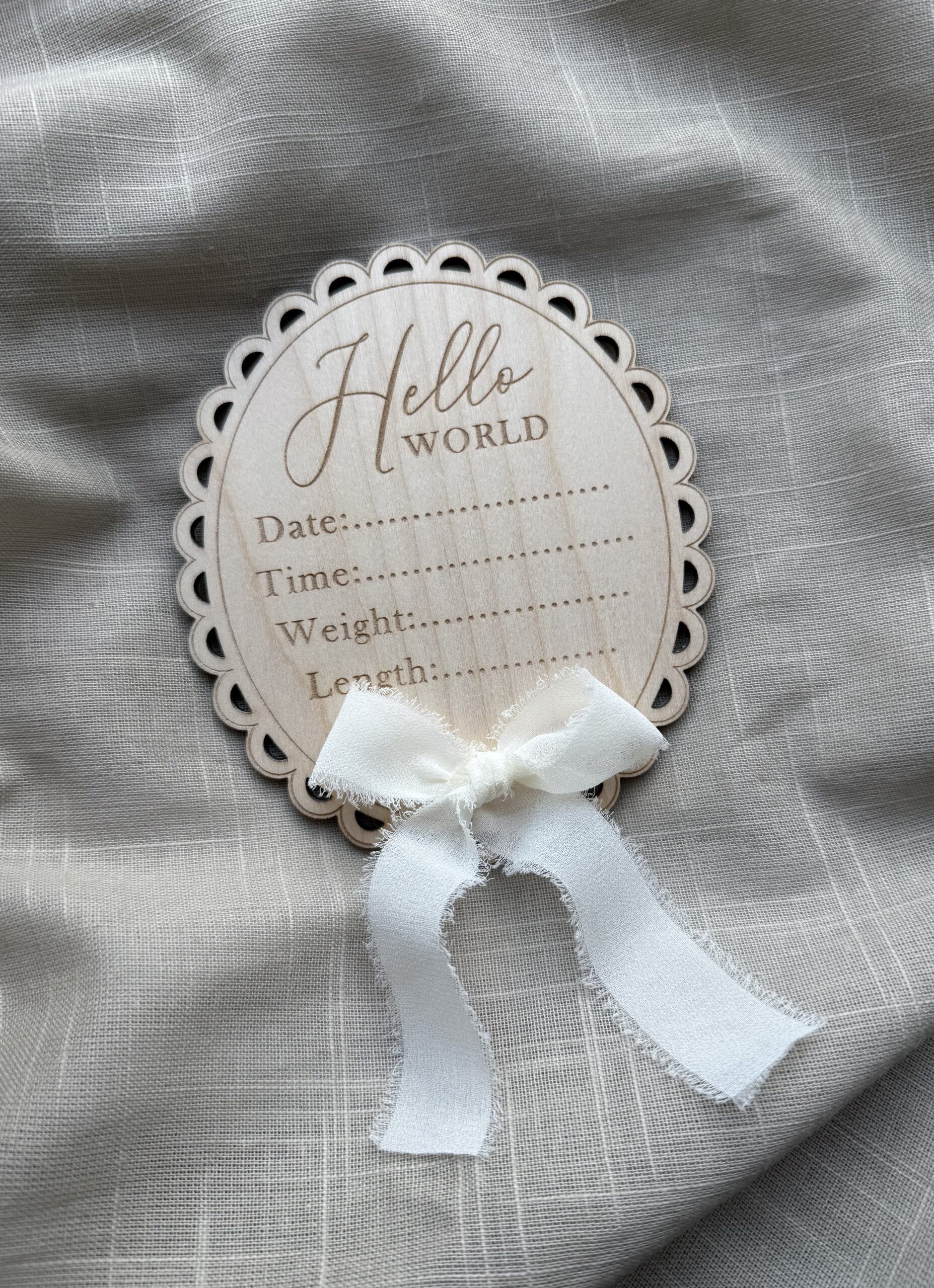 Söt och personlig liten skylt att välkomna sin nya familjemedlem för omvärlden med