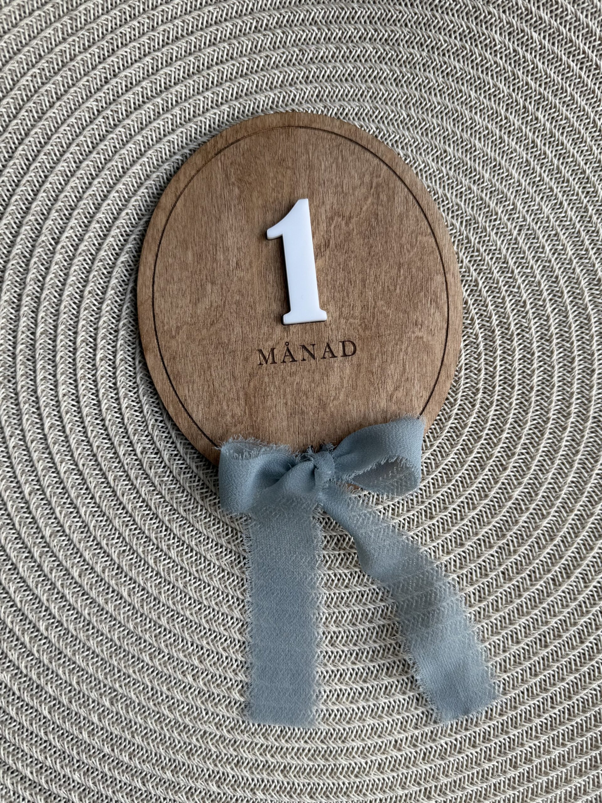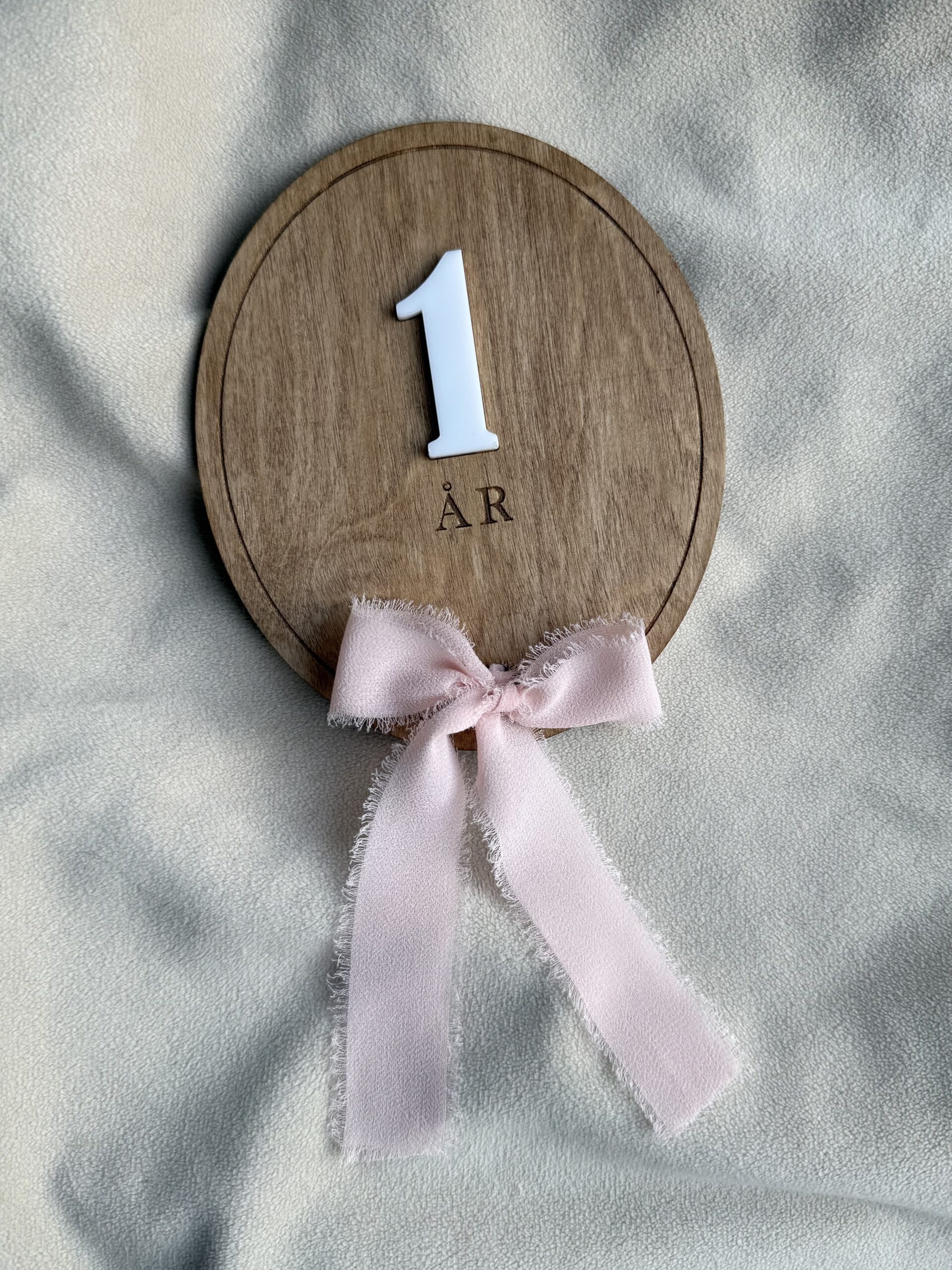 Underbart söta milstolpekort med dekorativt chiffongband i valfri färg🎀