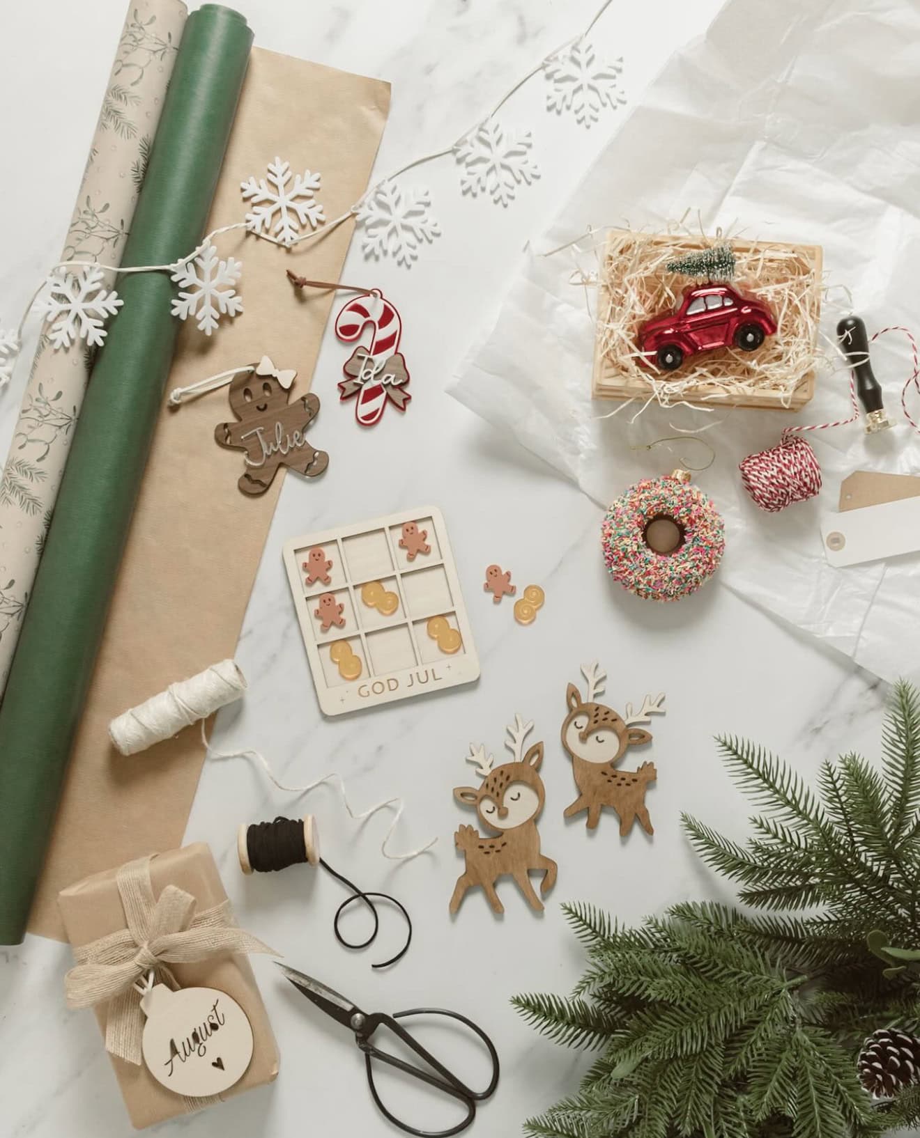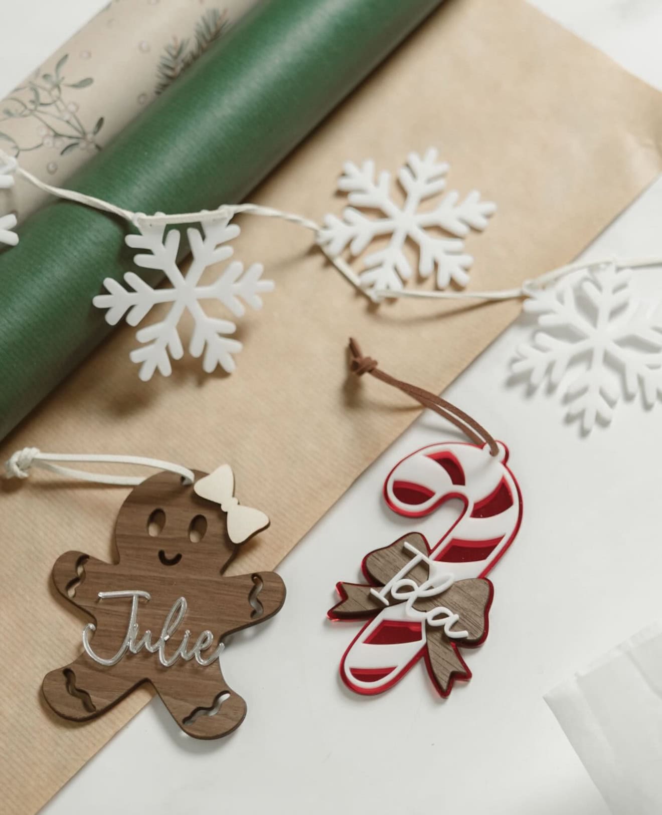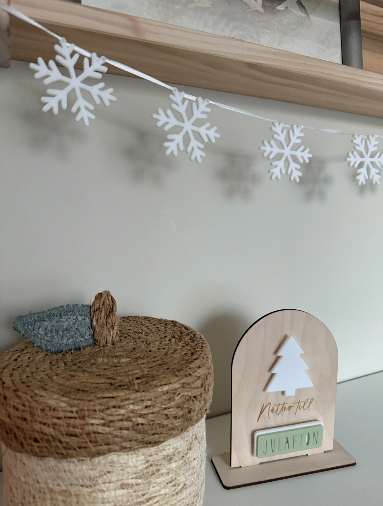 Naturellt trä, Vit akryl, Glitterakryl Guld, Glitterakryl Silver