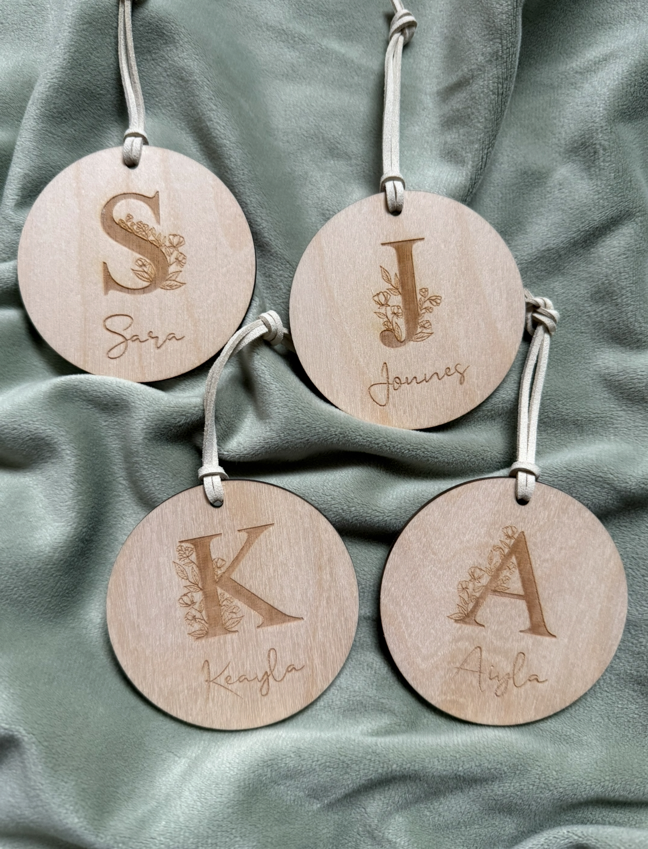 Skapas med graverad text på ljust naturellt trä