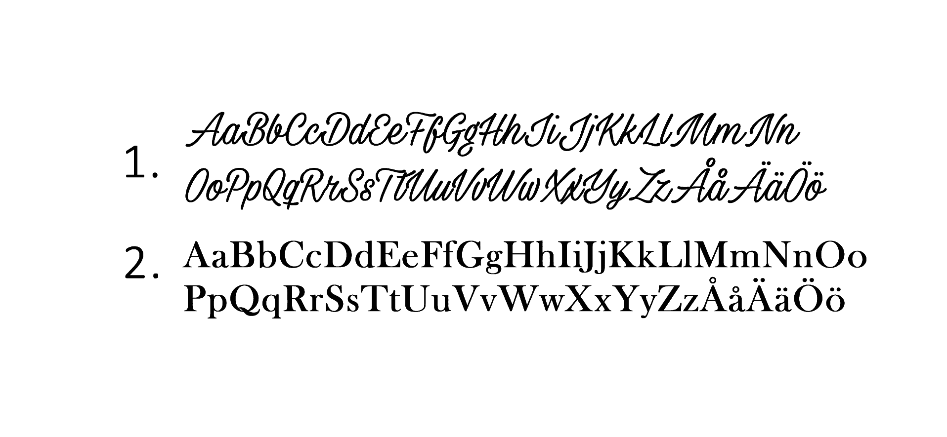 | Typsnitt | 1. Kursiv, 2. Rak |
