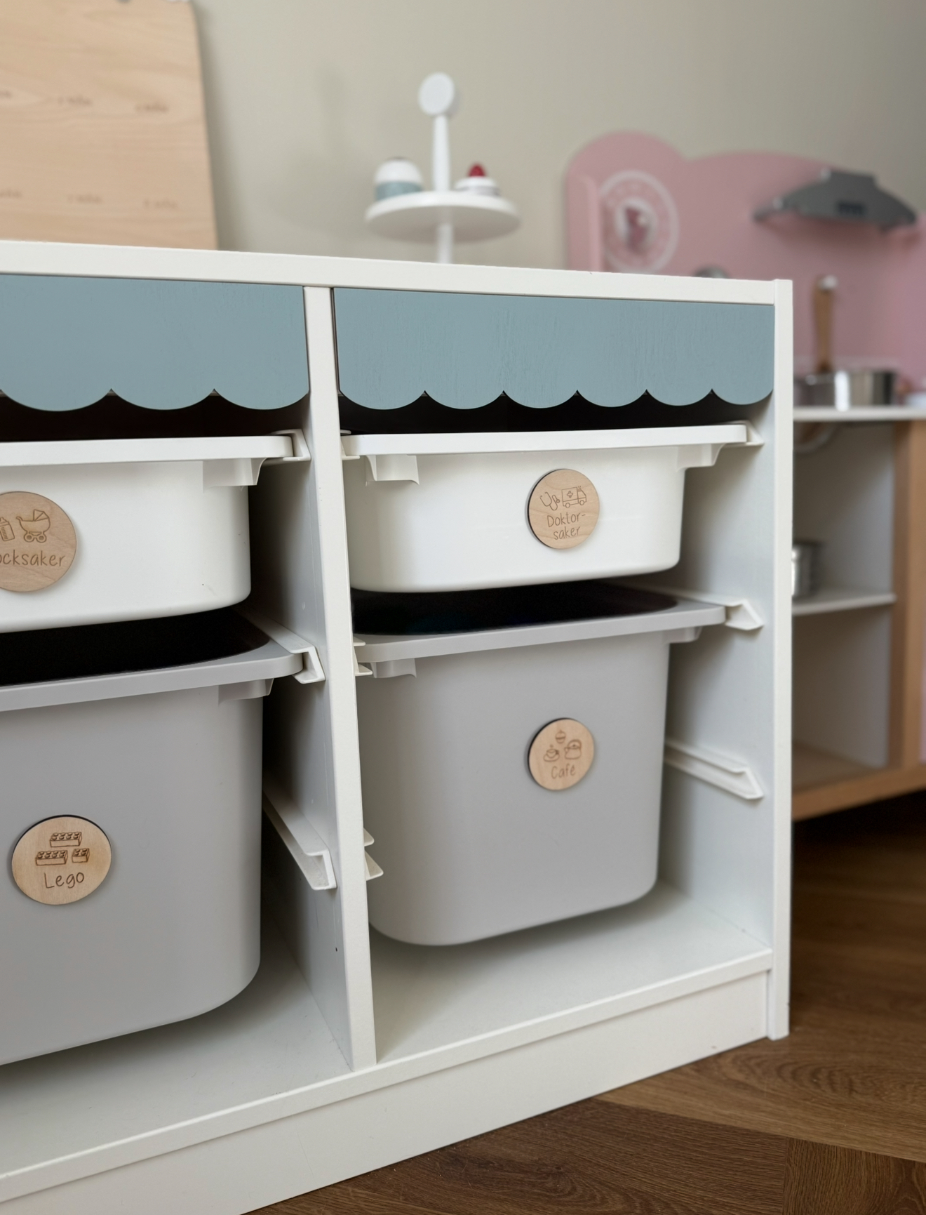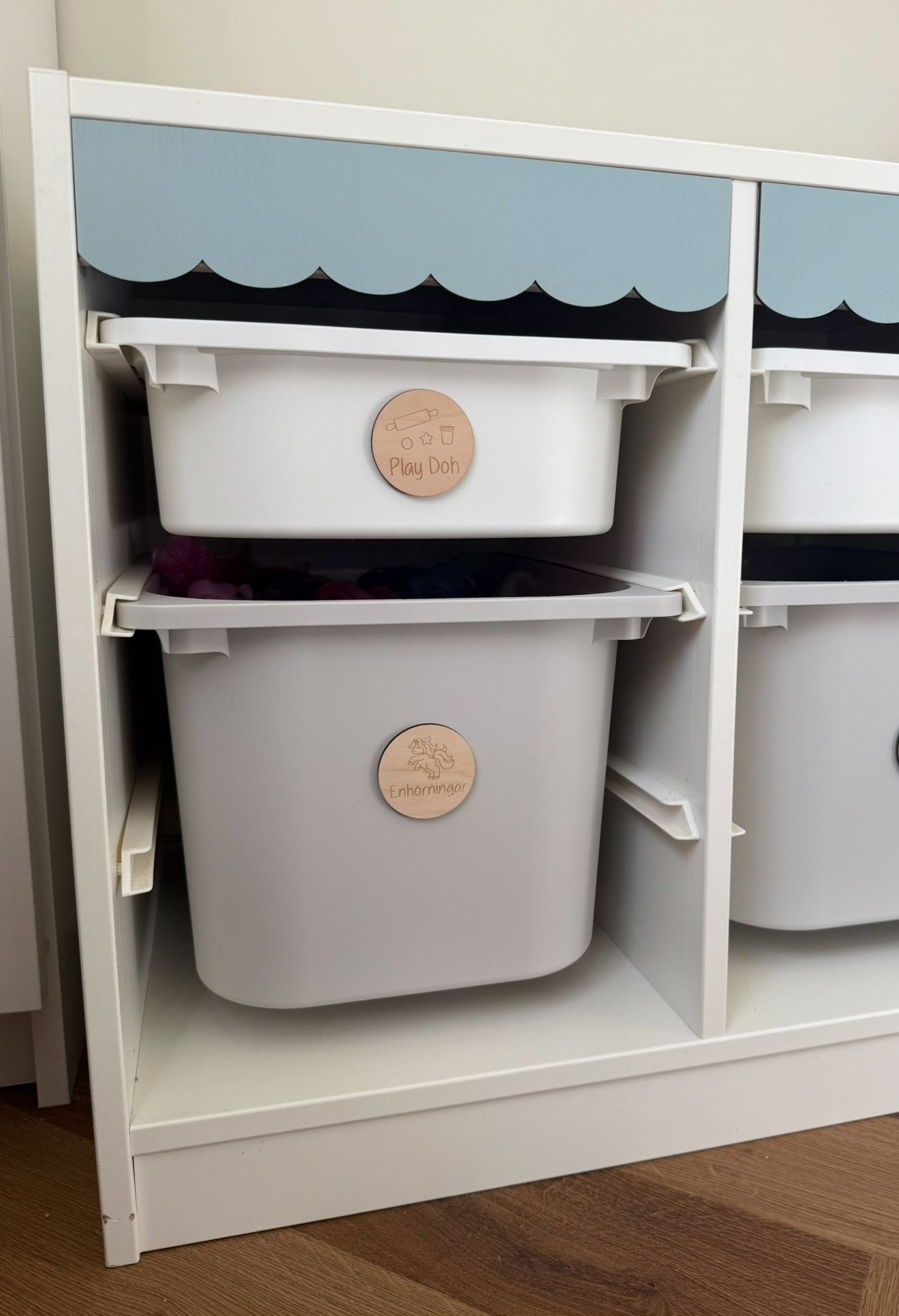 Skapas i naturellt trä eller målad i valfri färg på ena sidan så den enkelt kan vändas och bytas ut för omväxling (se färgkarta i bildspel).
